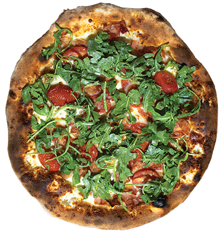 Housemade white sauce, smoked mozzarella, applewood smoked bacon, cherry tomatoes and EVOO. Topped with arugula tossed in garlic dijon aioli