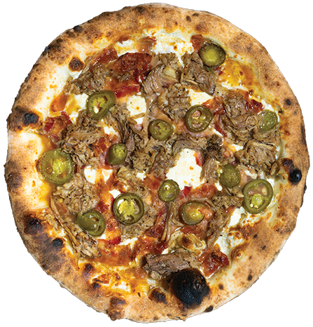 Local BBQ pulled pork, smoked mozzarella, applewood smoked bacon, jalapeños & bourbon reduction. No red sauce
