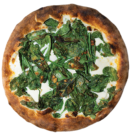 Housemade white sauce, fresh mozzarella, baby spinach, caramelized garlic, hand shaved parmesan, EVOO