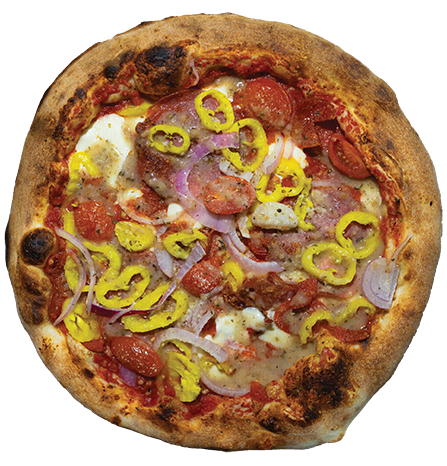 Housemade red sauce, provolone, sweet Italian sausage, red & green peppers, red onions, dried oregano, crushed red peppers, and EVOO.